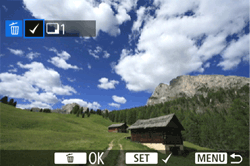 > 轉盤選擇 [選定並刪除影像],然後按下 <