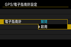 > 轉盤選擇 [GPS/電子指南針設定],然後按下 <