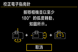 )。不斷移動相機直到完成校正為止。•如果執行此操作後仍未校正指南針,請左右轉動您的身體再次移動相機。