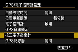 > 轉盤選擇 [校正電子指南針],然後按下 <