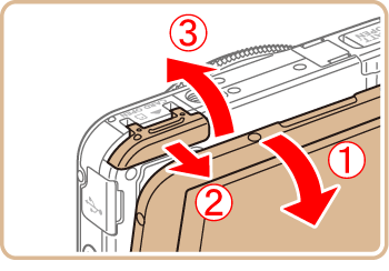 朝向如圖所示方向,沿箭頭方向按壓電池鎖