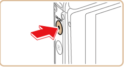 。按照圖示方向拿著隨附的介面連接線的小插頭,將其完全插入相機端子