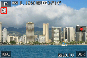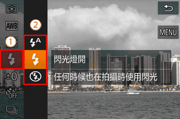 將 [閃光燈] 設定為 [自動] 時,[閃光燈] 在明亮的環境下不會啟用。但是,當拍攝背光主體時,某些情況下會使用 [閃光燈] 以防止主體較暗。本節介紹以閃光燈常開的方式拍攝的設定。