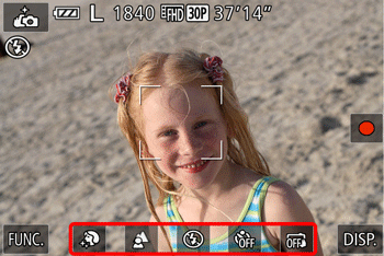 ![]() | - | 可以從 5 個級別中選擇亮度,從 3 個級別中選擇平滑肌膚效果。平滑肌膚效果將針對偵測為主體的人物臉部加強。 |
