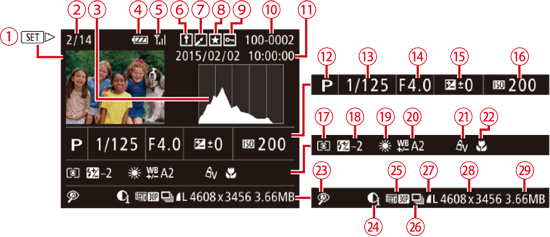 ![]() | 目前的影像編號/影像總數 | ![]() | 測光方式 |