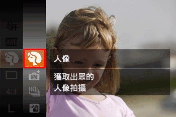 ] 轉盤選擇所需 [拍攝模式]。(以下影像中已選擇 [人像] (