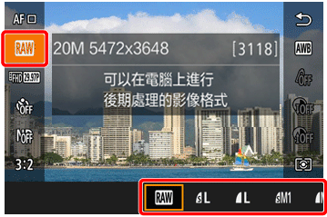 3. 要僅以 RAW 儲存影像,請按 [