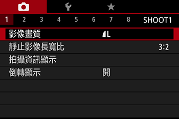 ] 按鈕在選單中選擇 [影像畫質]。*如果未變更預設設定,則會顯示