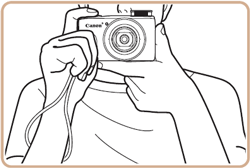 緊握相機兩側,手臂緊靠身體。確保手指不要阻擋 [閃光燈]。