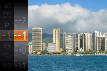 可以在 -2 至 +2 級的範圍內,以 1/3 級的增量調整相機設定的標準曝光。
