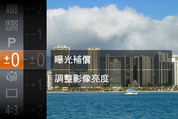 ] 按鈕選擇 [曝光補償] (如尚未變更設定,會顯示 [