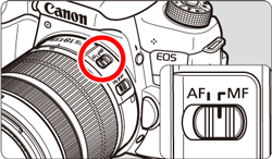 3. 完成Part I的步驟1和2後,將鏡頭對焦模式開關設定為[MF]。