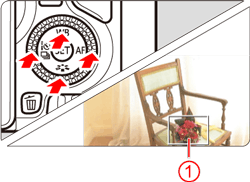] ),將放大自動對焦點覆蓋的區域。在放大檢視中,請半按快門按鈕對焦。這在將相機安裝在三腳架上並需要進行精確對時焦非常有效。如果難以對焦放大的檢視,請返回正常螢幕並使用自動對焦。請注意,正常及放大顯示時的自動對焦速度可能會不同。 - 如果在正常檢視中使用[FlexiZone - 多點]或[FlexiZone - 單點]對焦後放大檢視,可能無法進行精確對焦。