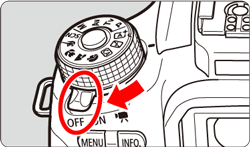 4. 按[MENU]按鈕以關閉液晶螢幕上的顯示內容,然後將相機的電源開關設定為[OFF]。
