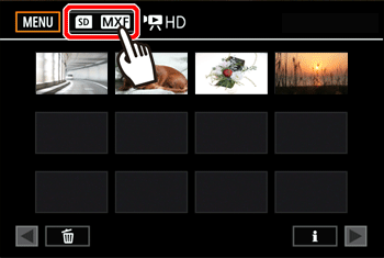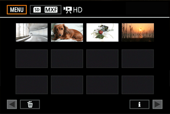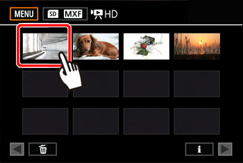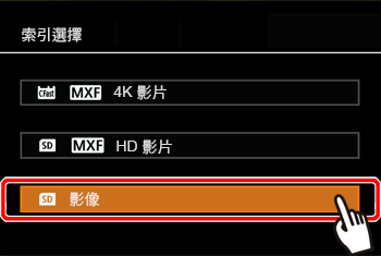 ] 按鈕。- 顯示 SD 卡的 HD 影片索引。