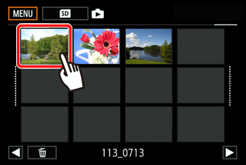 - 您可以用手指左/右拖曳以逐張瀏覽影像。也可以使用遙控桿瀏覽影像。