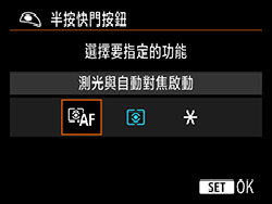 3. [半按快門按鈕] 螢幕出現,選擇 [