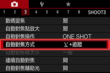 :自動對焦方式] 設定頁。