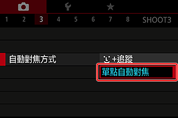 5. 從顯示的下一螢幕上觸摸 [單點自動對焦] 進行選擇。