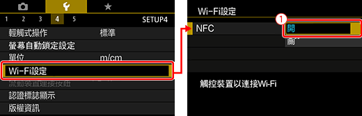] 設定頁顯示 [Wi-Fi Settings],確認 [NFC] 已設定為 [開] (