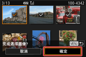 7. 完成選擇影像後,按 <MENU> 按鈕。