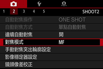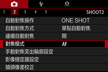 - 安裝有 EF-M 鏡頭時,會顯示 [對焦模式]。安裝有 EF 或 EF-S 鏡頭時,將不會顯示。