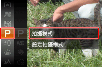 ] 按鈕數次直至出現 [ P ] 模式*。* 購買後 [ P ] 模式會作為預設模式顯示。如果從未變更過設定,將顯示所選擇的拍攝模式。