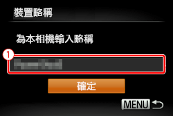 [密碼],並將設定變更為 [開],SSID 及密碼將出現在螢幕上,並可提高安全性。這種情況下,相機上顯示密碼時,在智能手機的密碼區域輸入該密碼。