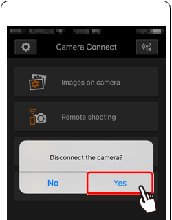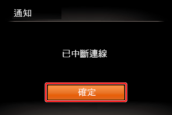 6. 相機和智能手機斷開連接後,下方螢幕出現在相機螢幕中。選擇 [確定],然後按 [