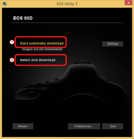 1. EOS Utility 的主視窗出現後,請按一下 [下載影像至電腦 (Download Images to Computer)]。