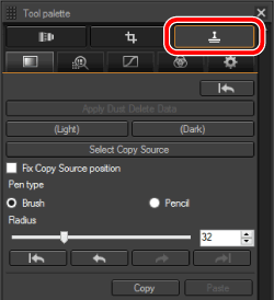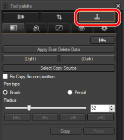] 按鈕選擇 [除塵/複製圖章工具板 (Dust Delete/Copy Stamp tool palette)]。