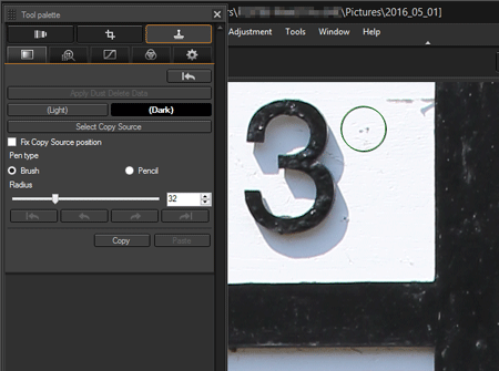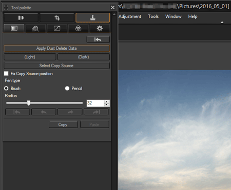 使用 Digital Photo Professional Ver.4.x 進行影像除塵 (複製圖章工具)