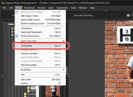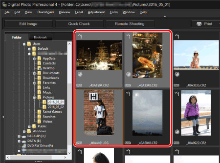 1. 啟動 Digital Photo Professional Ver.4.x 並在主視窗中選擇想要從中去除塵點的影像。