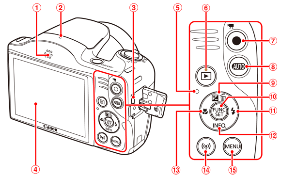 部件名稱及螢幕上顯示的資訊 (PowerShot SX420 IS)