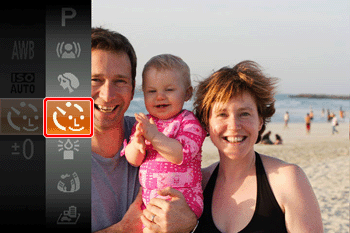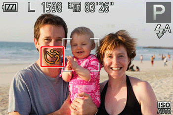 - 請確保所對焦臉部周圍顯示綠色框,其他臉部周圍顯示白色框。