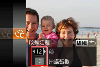 可以指定延遲時間 (0 – 30 秒) 和拍攝張數 (1 – 10 張)。