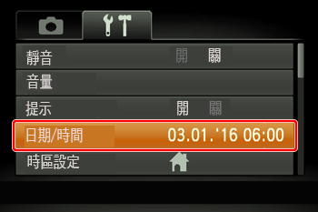 - 開機時,如日期/時間電池的電量耗盡,螢幕便會顯示 [日期/時間] 畫面。按照「設定日期及時間」中所述正確設定相機的日期及時間。