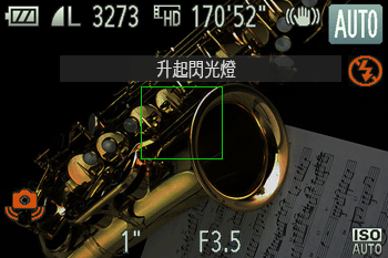 在昏暗的環境中以 [AUTO] 模式拍攝時,液晶螢幕上可能會出現 [升起閃光燈] 的訊息。如果出現,請用手指升起閃光燈。