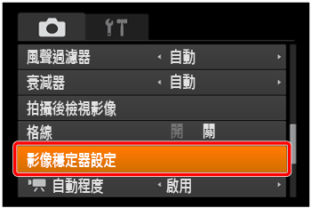 ] 按鈕選擇 [影像穩定器設定],然後按 [