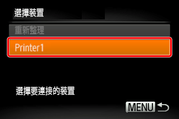 - 連接至打印機後,將在步驟 3 的 [選擇裝置] 螢幕中顯示。選擇要連接的打印機。