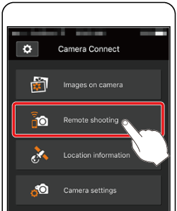 1. 在智能手機上的 Camera Connect 選單畫面上,選擇 [遙控拍攝 (Remote shooting)]。