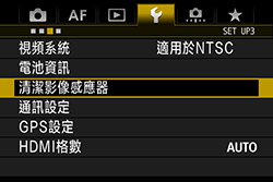 ] 設定頁,在顯示的選單中選擇 [清潔影像感應器],然後按 <