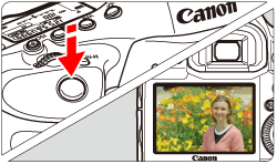 - 拍攝相片,拍攝的影像將顯示在液晶螢幕上。