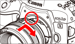 請參閱下圖,並將對焦模式開關設為 <AF>。