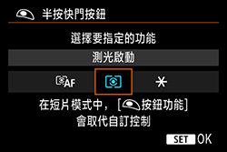 在下圖中,已設定「半按快門按鈕時僅執行測光操作 (不執行自動對焦)」。