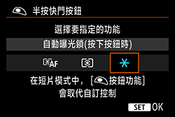 在下圖中,已設定「半按快門按鈕時鎖定自動曝光 (鎖定曝光)」。