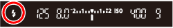 > 按鈕拍攝閃光相片。閃光燈回電時,觀景器中會顯示「