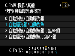 紅色標記如果半按快門按鈕時無法操作自動對焦,自訂功能設定可能已作如下所示更改。