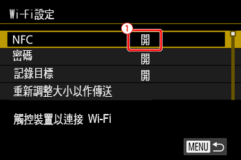 ) 選單中將 [NFC] 設定為 [開 (ON)]。
