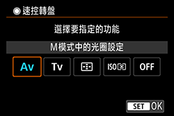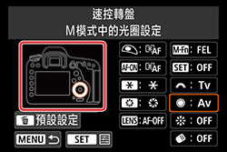 *5: 在顯示的速控轉盤設定畫面上,可按下 <INFO.> 按鈕,然後設定轉動 <
